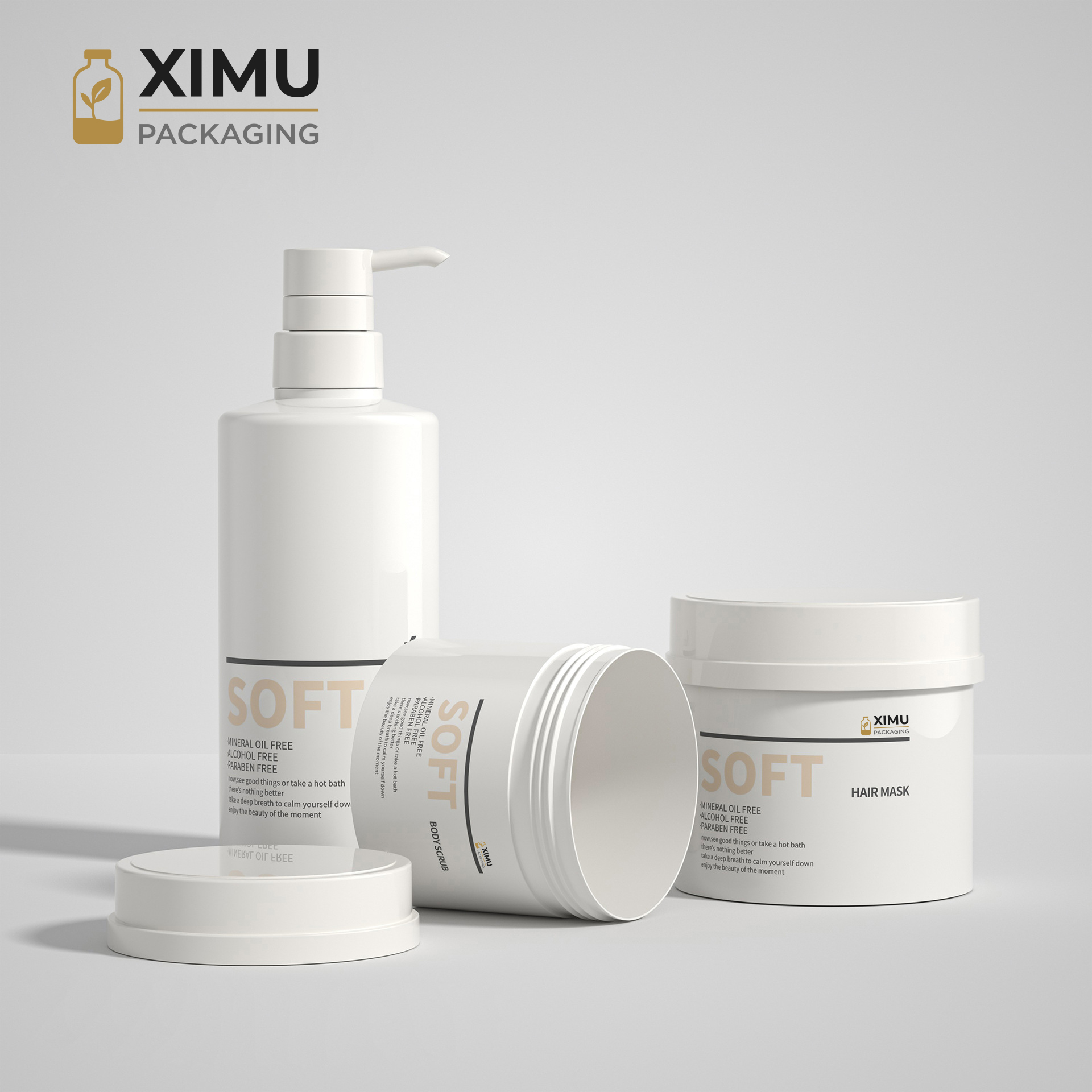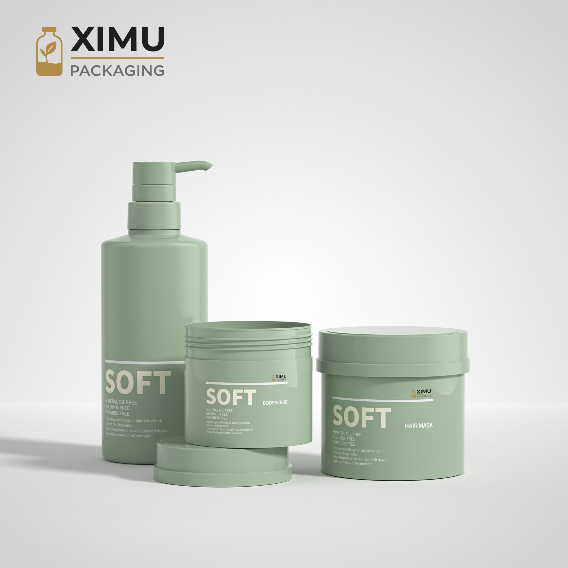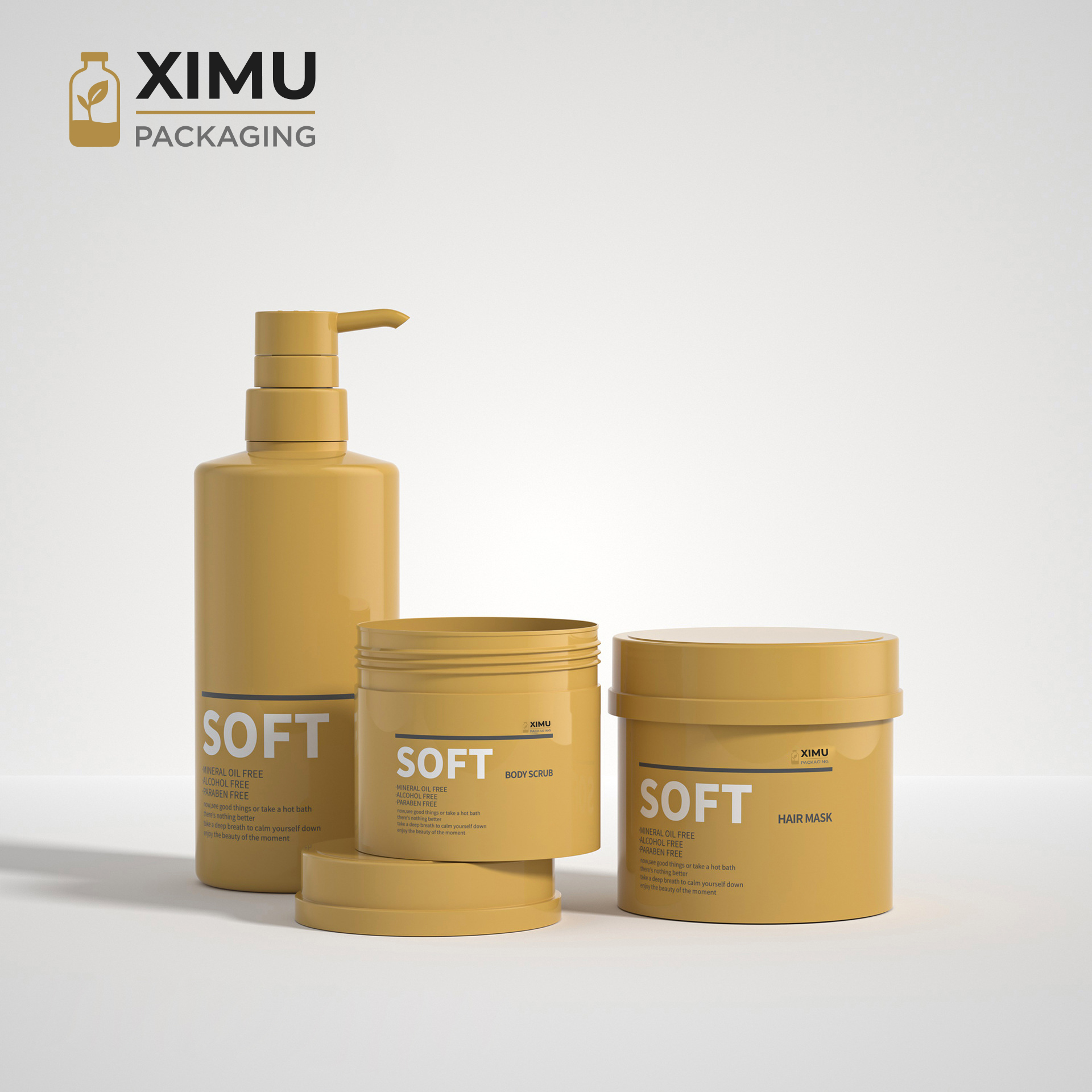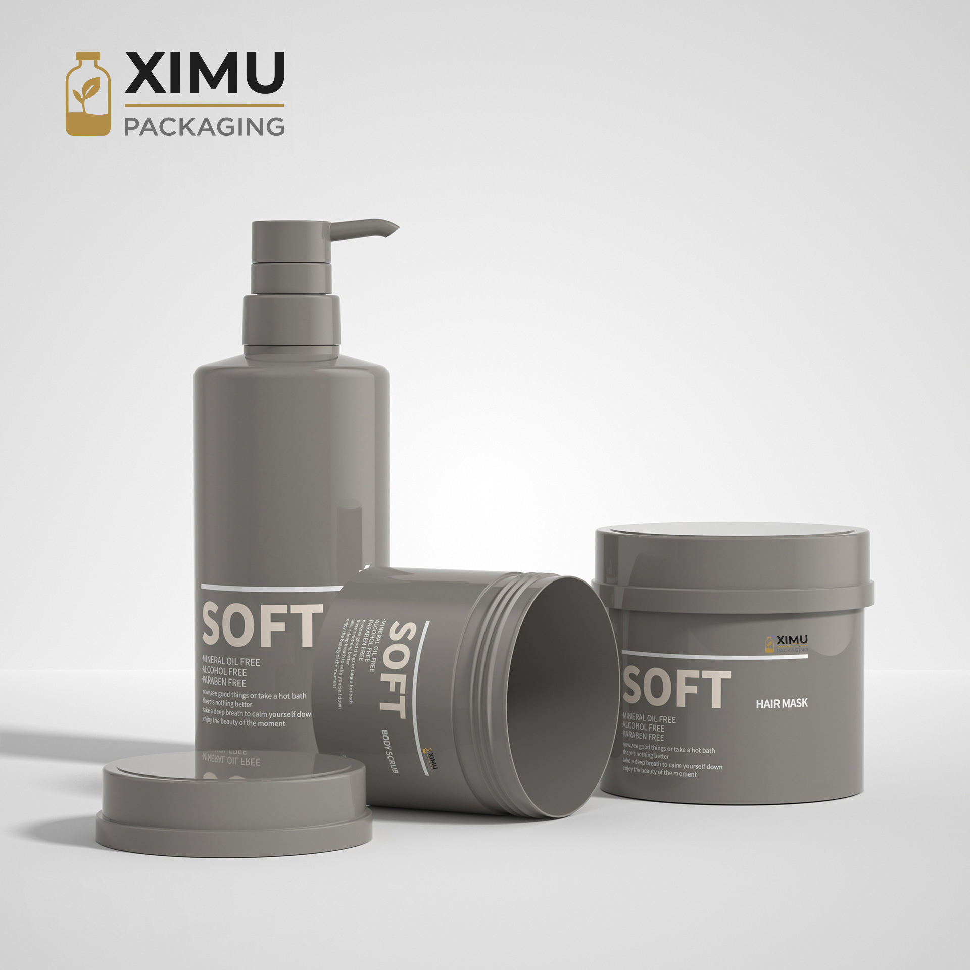 Designed for 300ml to 500ml, these large PET jars are perfect for hair masks, balms, and cream-based cosmetics. The Japanese hat-style lid adds playful elegance and brand identity, while the tight seal keeps contents fresh. PET combines glass-like clarity with lightweight durability, ideal for shelf display and cross-border shipping. Surfaces can be customized with silk-screen logo, hot stamping, or colored coating for unique brand aesthetics.