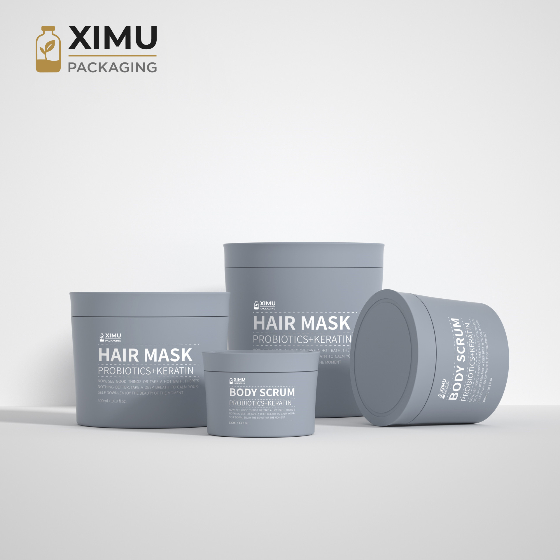 Available in 300ml, 500ml, and 1000ml, these premium PP hair care bottles are designed for both home and professional use. Wide-mouth opening allows easy access to creams and masks, while aluminum-look caps provide a luxurious feel. PP material ensures lightweight durability. Customization options include silk-screen logo, hot stamping, or color coating, perfect for e-commerce, retail display, or gift sets.